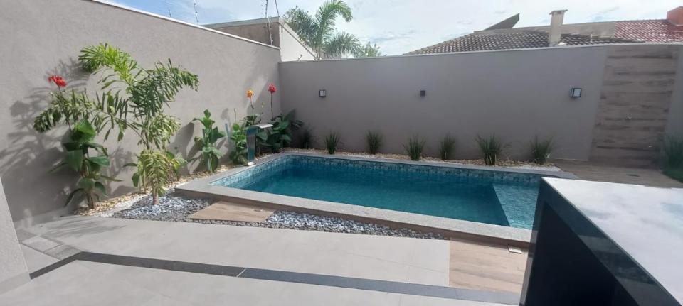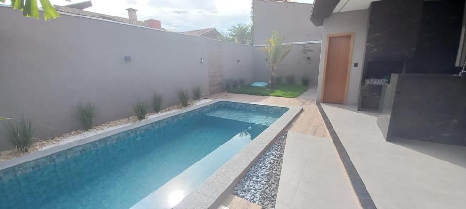 casa térrea com 3 suites, ampla sala, 2 wcs, 3 vagas de garagem, jardim, piscina, lindo acabamento, agende sua visita com corretor Osvaldo Gusman creci ms 4162 watts 67 99983-1355.